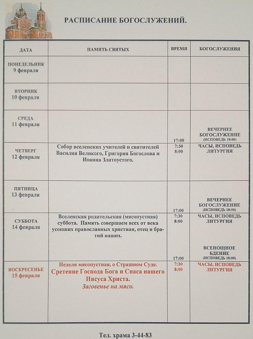 РАСПИСАНИЕ БОГОСЛУЖЕНИЙ